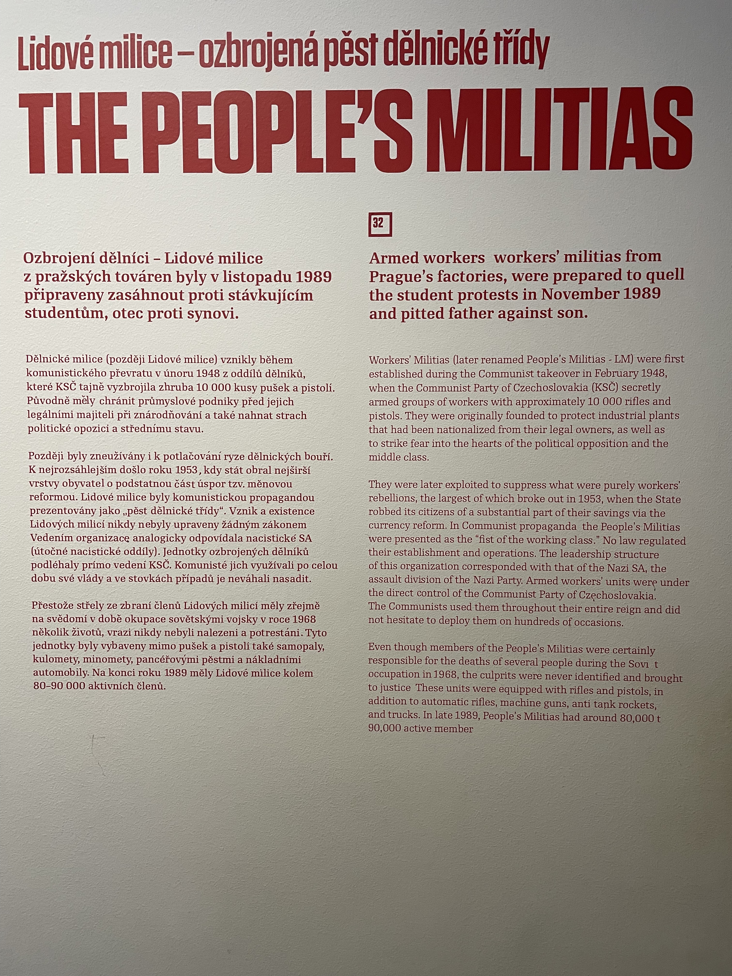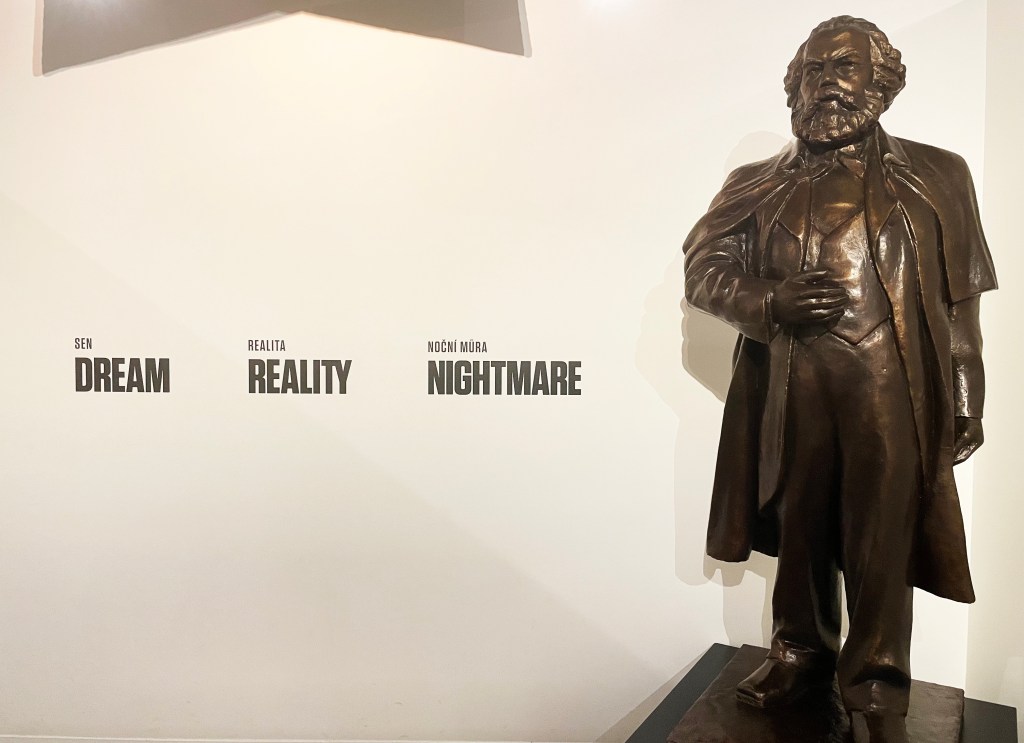 The museum is on the edge of the Old Town in Prague in a very modern building. The exhibition space is a series of numbered wall texts with images, physical objects and audio-visual resources used to tell the story in three parts: The Dream, The Reality, The Nightmare.