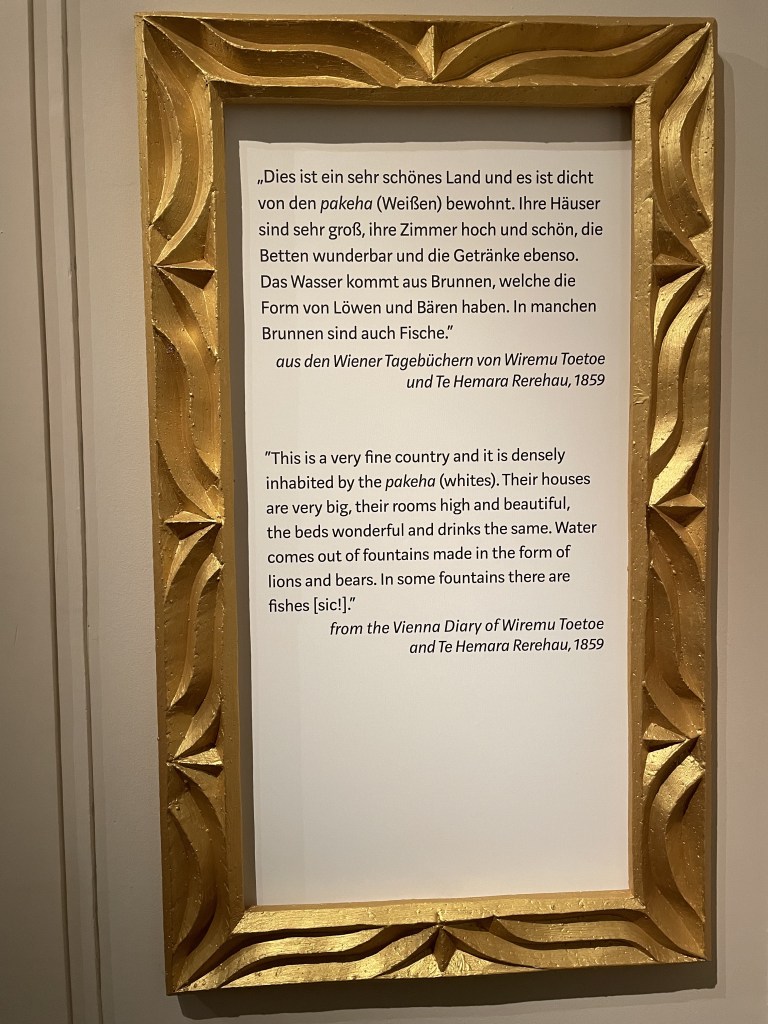 We also visited George Nuku’s massive exhibition “Oceans. Collections. Reflections.” at the Welt Museum in Vienna. The spaces juxtapose items from the museum collection and 19th Century Austria-Aotearoa engagements.